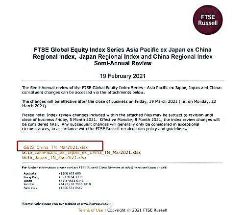 近日,國際指數(shù)編制公司富時羅素公布了旗艦指數(shù)2021年2月的季度審議結(jié)果,總計新增了129只A股標的,龍大肉食(002726.SZ)正式進入富時羅素全球股票指數(shù),該變動將于3月19日(3月22日開盤前)收盤后正式生效。