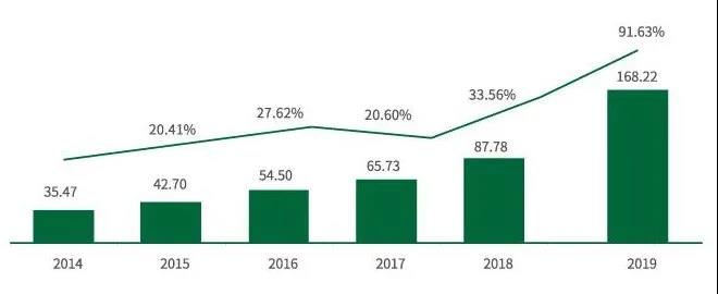 對(duì)比近些年發(fā)展成績(jī)看,龍大肉食自2014年上市以來(lái),年均復(fù)合增長(zhǎng)率達(dá)到30%,2019年更是取得了營(yíng)收同比增長(zhǎng)91.63%的優(yōu)異成績(jī),這與公司長(zhǎng)期堅(jiān)持全產(chǎn)業(yè)鏈發(fā)展模式密不可分。