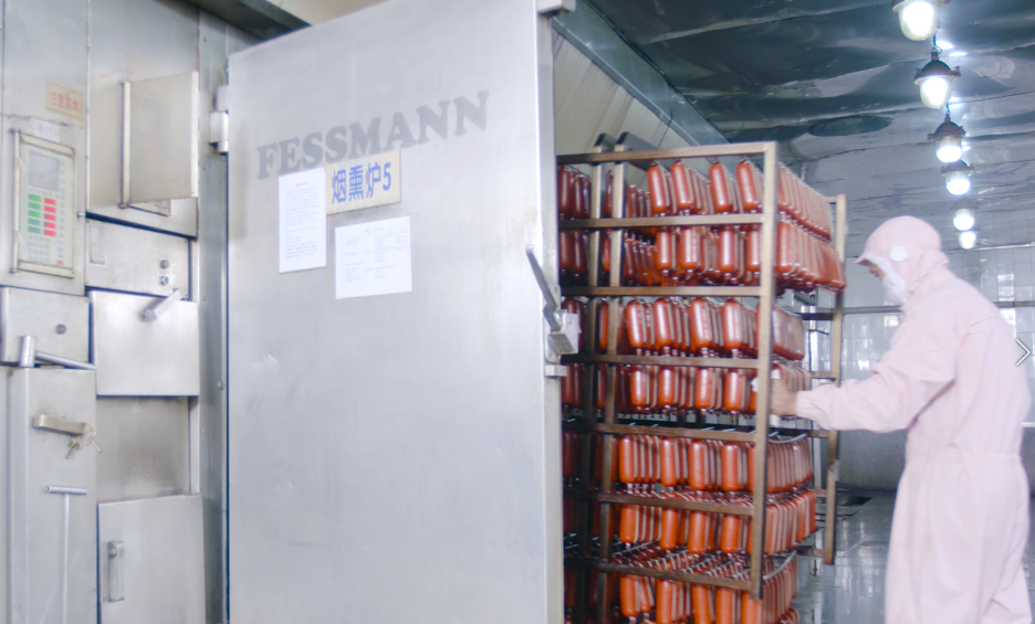 龍大肉食目前擁有5家肉制品加工廠,配備的生產(chǎn)車間引進(jìn)了一系列國際水平一流、生產(chǎn)效能高的流水線生產(chǎn)設(shè)備,其中包含灌裝精準(zhǔn)、顆粒分明的德國韓德曼灌裝機(jī),能保持原料原味和新鮮度的意大利LASKA絞肉機(jī)和斬拌機(jī),以及德國CFS的真空包裝機(jī),威馬格等地的煙熏爐等,形成了從原料解凍、肉質(zhì)嫩化、真空提取肉蛋白到恒溫恒熱熱加工等關(guān)鍵環(huán)節(jié),全封閉無菌式、低溫高效的安全生產(chǎn)技術(shù),并通過“分析-控制-監(jiān)測-校正”的方法,最大化保證食品品質(zhì)并預(yù)防食品事故的發(fā)生。